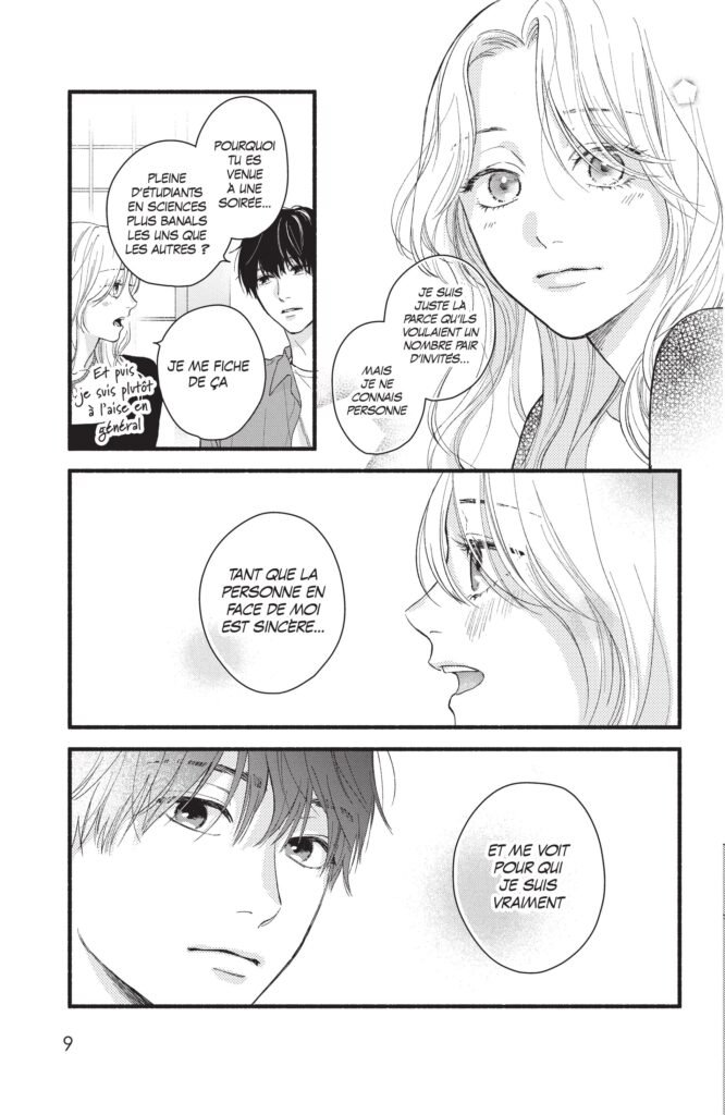 Cette œuvre est une agréable découverte, autant pour ses illustrations sublimes que pour l’histoire qui se cache derrière. Car oui, ce manga est focalisé sur une relation qu’on pourrait qualifier de mature. Loin des shōjo qui appuient sur l’aspect mignon qu’on a l’habitude de lire.