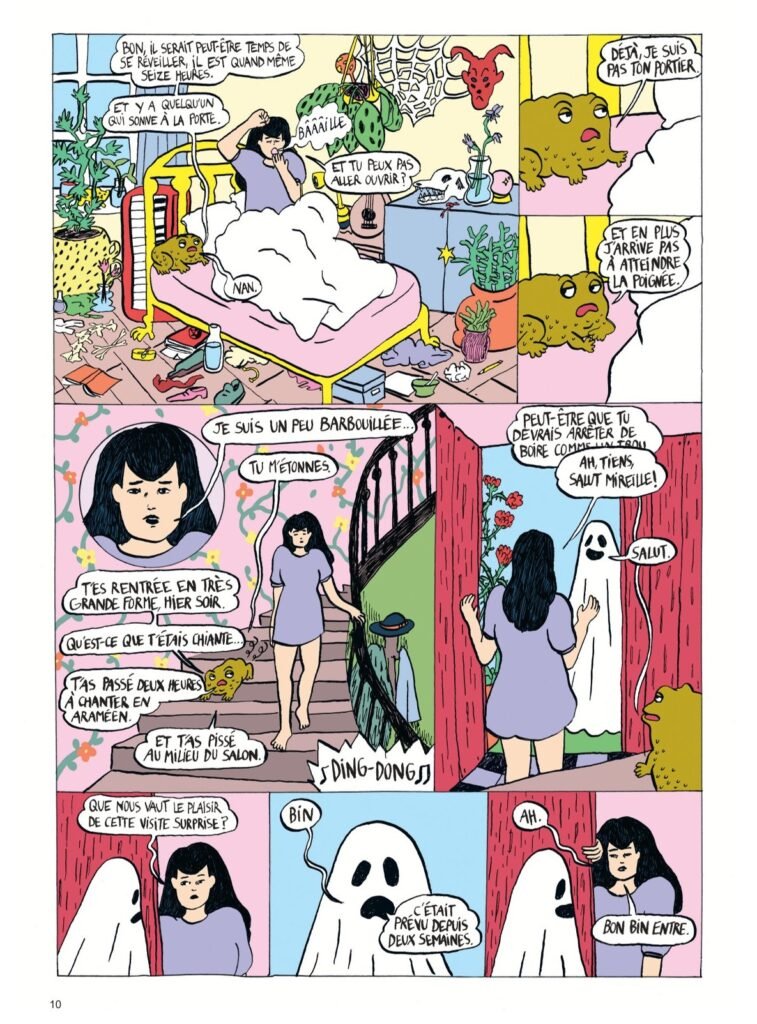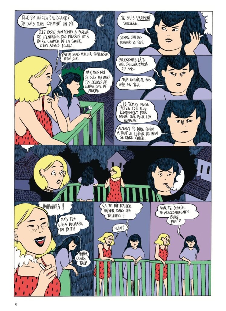 L’humour trash de la BD m’a fait rire plus d’une fois. Les dialogues sont super bien écrits, chaque personne a sa façon de parler, et ce genre d’attention donne une dimension encore plus vraisemblable au récit. Mettre en scène des monstres folkloriques dans un monde contemporain n’est pas nouveau, mais la vision de l’autrice a un charme si particulier que l’on est instantanément plongé au milieu de ce bordel qu’est la vie d’Ancolie.