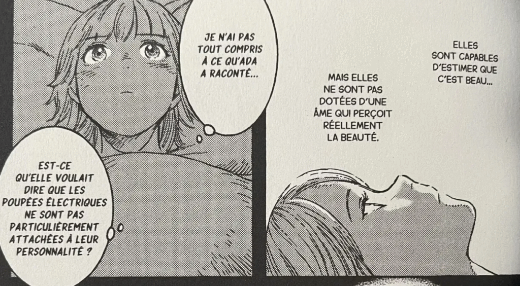Le récit prend un nouvel élan dans ce quatrième tome, notamment avec des révélations sur le passé d’Erio. De nombreuses questions restent encore en suspens, et on prend plaisir à spéculer sur la suite, notamment avec l’apparition d’une autre androïde similaire à Ange.