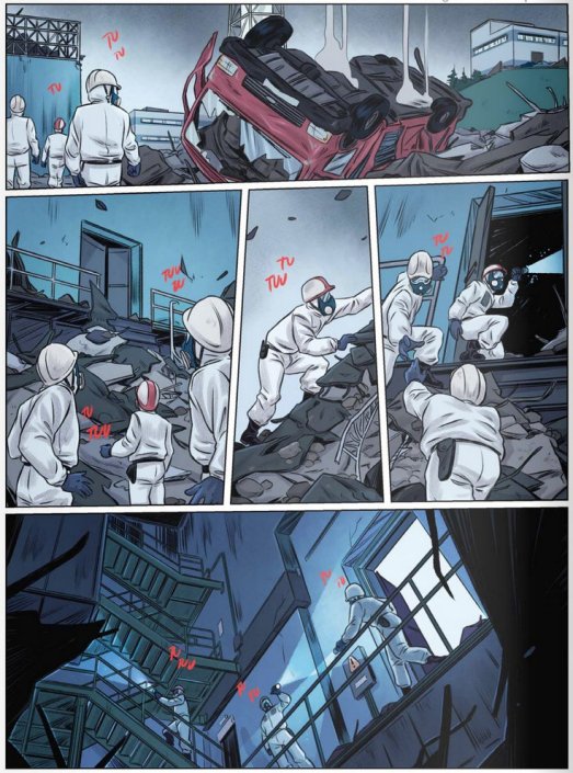 Bertrand Galic et Roger Vidal retracent avec force et détails les premières journées d’une tragédie sans fin. Le récit d’un compte à rebours angoissant, pendant lequel un chef et ses équipes doivent faire face à une catastrophe technologique sans précédent et à des supérieurs complètement dépassés par les événements.Synopsis, éditions Glénat