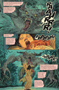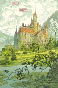 Les visages semblent vibrer et les décors du manoir regorgent de détails qui ajoutent à l’immersion du lecteur dans l’histoire. Et que dire des créatures fantastiques aussi fascinantes que cauchemardesques ? À travers son coup de crayon si particulier, on retrouve des influences d’autres grands dessinateurs comme Frank Frazetta dont le trait brutal a fait parler de lui ou encore Alfons Mucha dont la délicatesse et la grâce ont toujours été enivrantes.