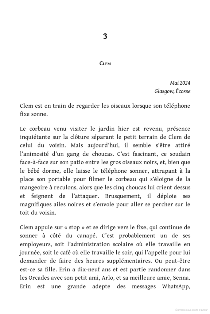 Clem m’a aussi énormément touchée. De santé fragile, elle met sa vie en danger pour protéger sa fille et comprendre ce qu’il s’est réellement passé dans les Orcades.