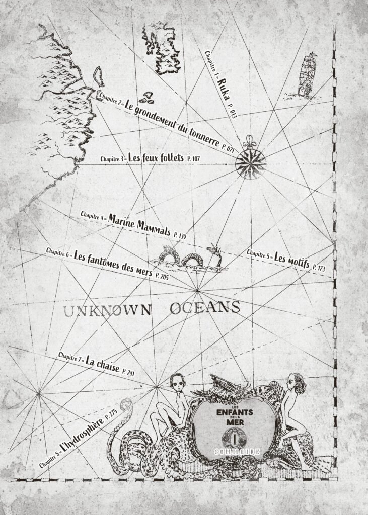 Ce premier tome nous permet de naviguer à travers ce monde impénétrable des océans et d’y découvrir des créatures fantastiques. Il place les prémices d’une aventure onirique et énigmatique, impliquant deux garçons bien étranges.