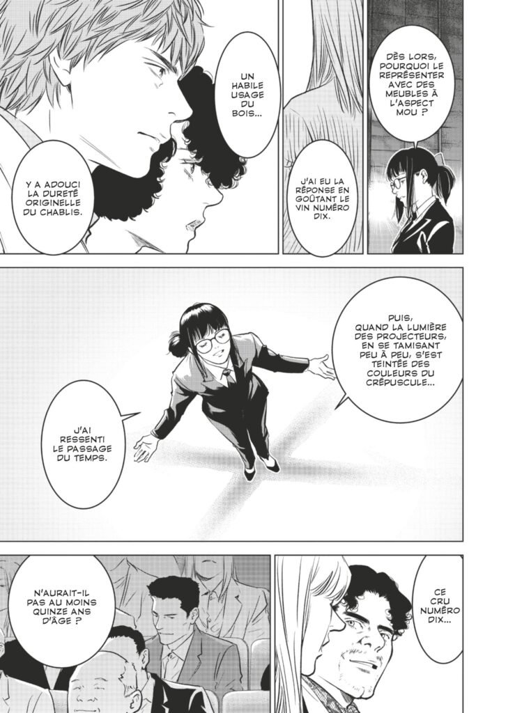 Pour commencer, ce dernier volume rend cette fin à la fois intrigante et inventive, le tout, avec un petit goût fruité. J’ai réellement aimé la façon dont le concours de la WIC (Wine Imagination Contest) s’est déroulé. Les épreuves nous plongent dans l’imagination et l’esprit de notre héroïne. Cette manière qu’elle a de décrire les saveurs des différents vins nous plonge automatiquement dans sa vision.