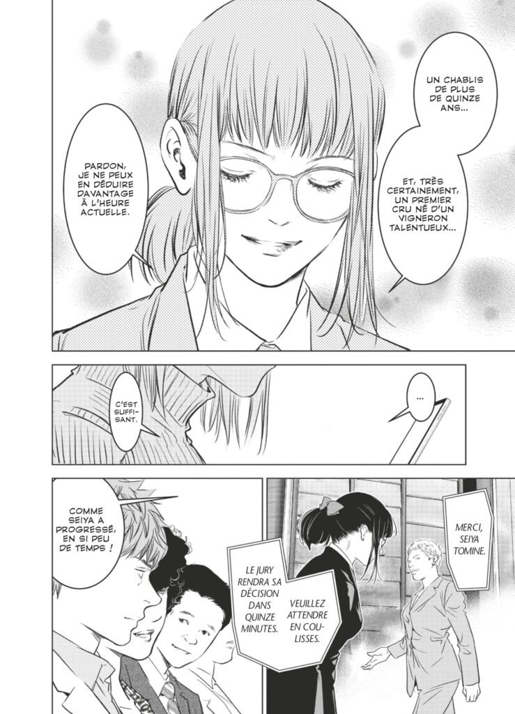 Dans le précédent tome, Seiya Tomine, fille d’Issei Tomine, doit redoubler d’efforts au championnat du monde d’imagination du vin pour lire le testament de son père. Alors qu’elle a peu d’expérience dans le goût, elle devra user de son inspiration et de son intuition pour accéder au tournoi principal.
