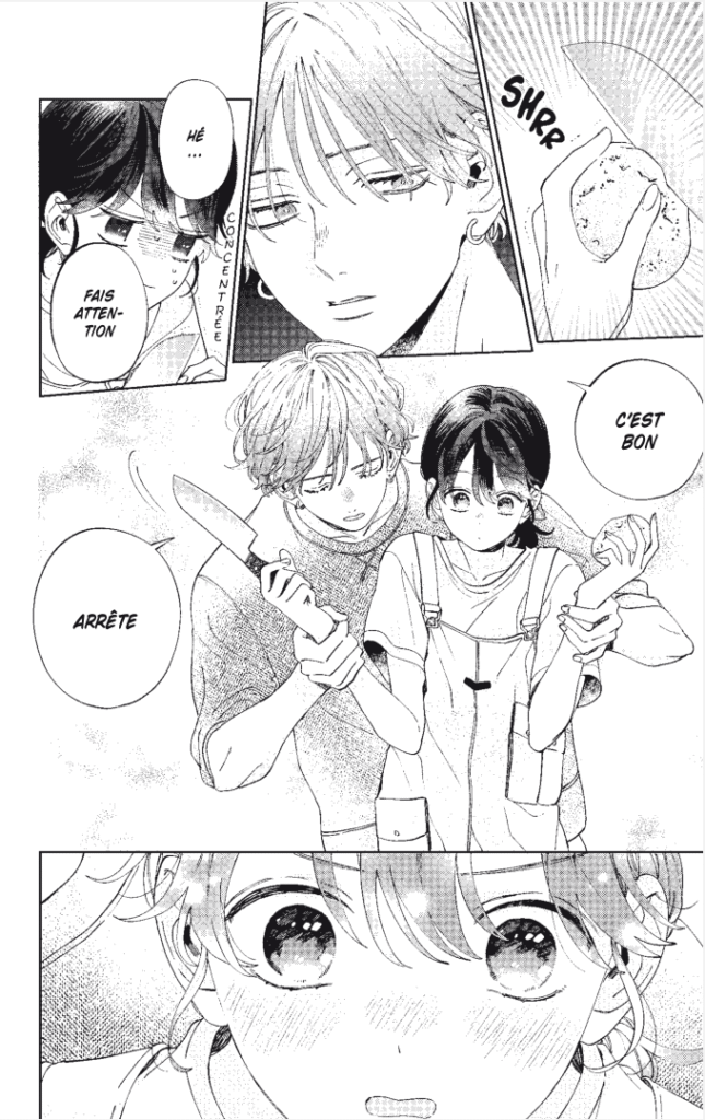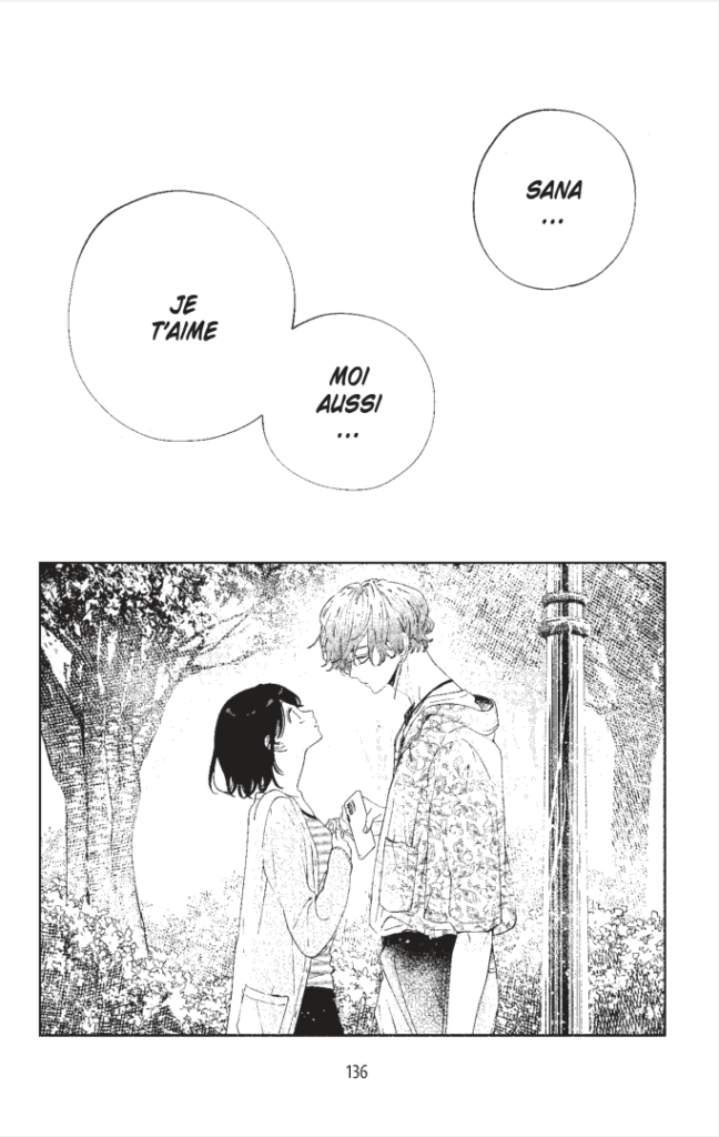 Si le camp d’été a posé les bases d’un rapprochement, le quatrième tome s’attaque frontalement à d’importantes barrières psychologiques. Les vacances scolaires s’ouvrent sur une séquence en barque qui va faire avancer la relation entre Sana et Kanato.