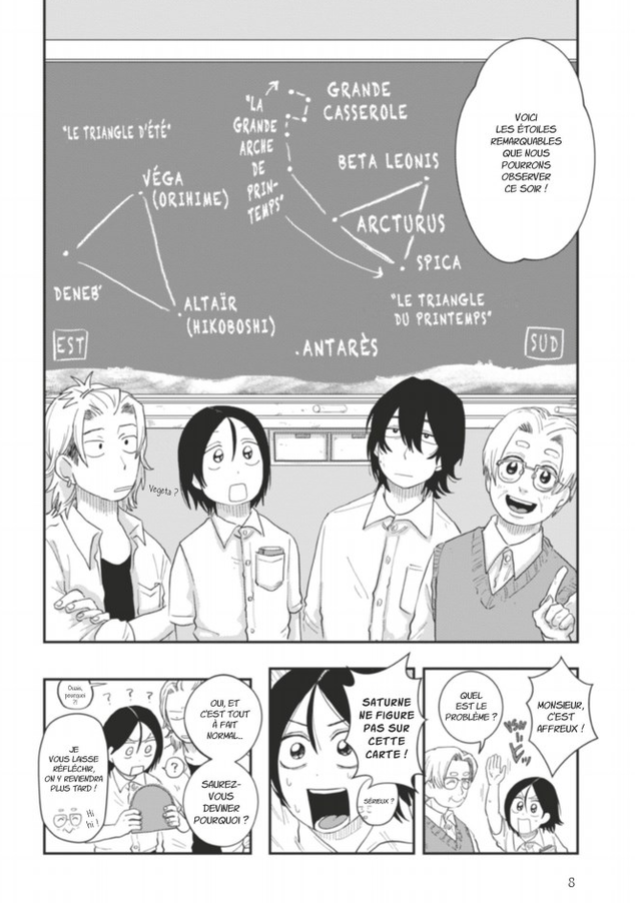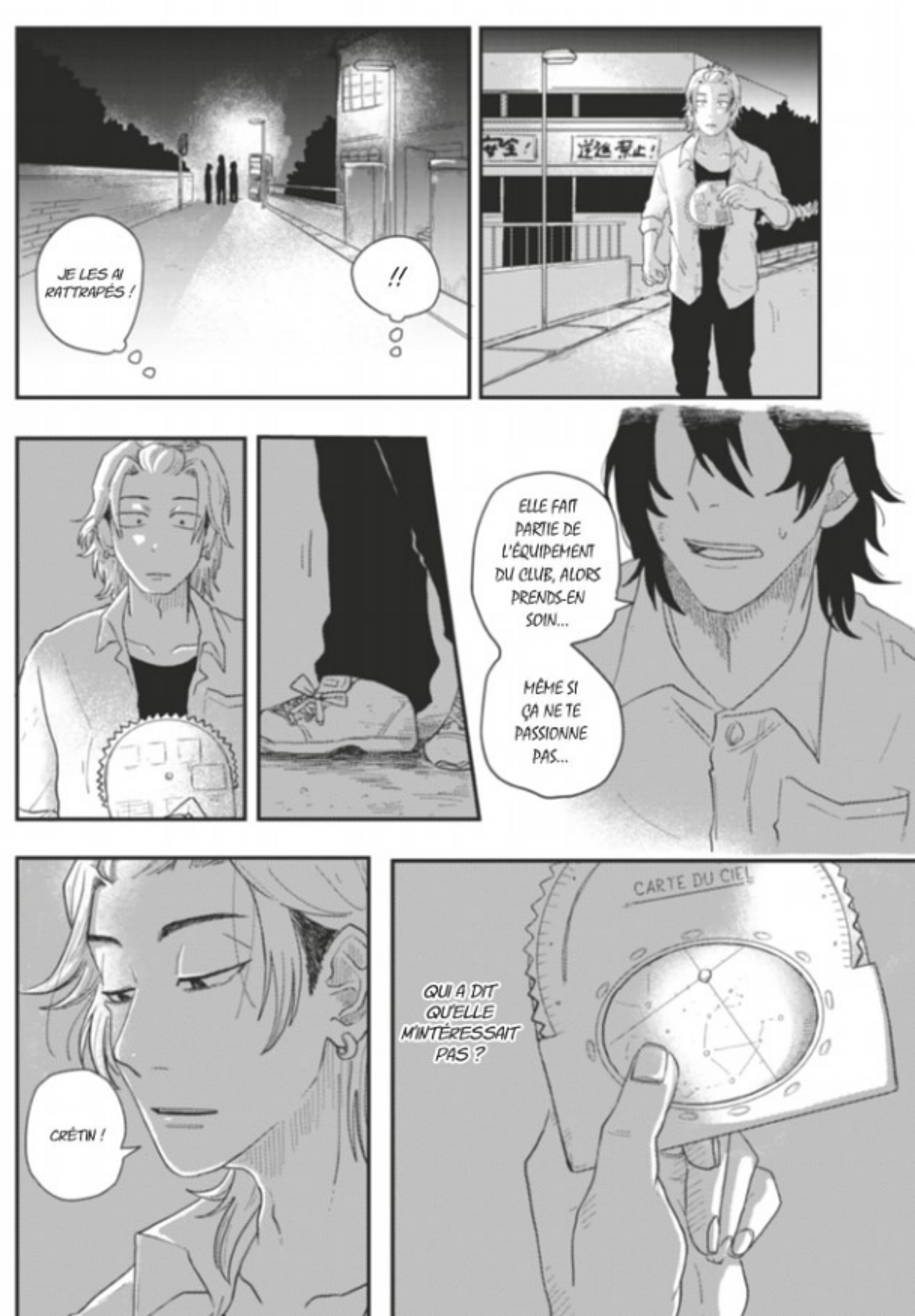 Ce qui rend aussi ce manga magnifique, c’est le lien entre nos deux protagonistes. J’apprécie qu’ils soient toujours là pour se soutenir, communiquer et essayer de se comprendre. Le duo se renforce encore plus grâce aux étoiles et ça, c’est magique. Cette amitié est avant tout une connexion magnifique entre deux âmes qui se complètent. Tandis que certains astres changent de trajectoire, Kobayashi et Uno affrontent les difficultés ensemble, avançant côte à côte sur le même chemin.