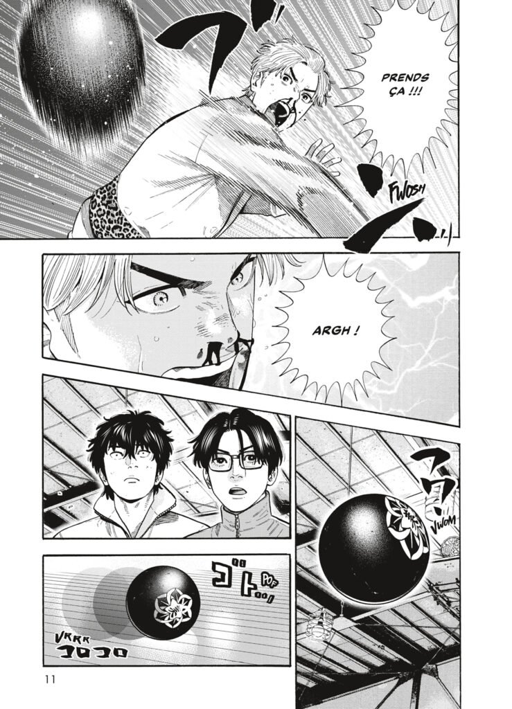 Ce que j’aime chez l’auteur, c’est qu’il revisite plusieurs de nos jeux d’enfance en version Yakuza. C’est-à-dire que ces parties deviennent deux fois plus sanglantes, intenses et extrêmes. Hiromasa Okujima va même plus loin en nous apportant des explications, des termes techniques ou des références à des joueurs olympiques japonais, ce qui est toujours un plus pour moi.