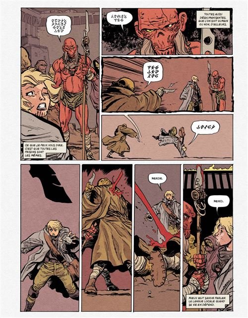 L’architecture de la planète fascine au fil des pages. Entre les divinités qui invitent le peuple à combattre à mort pour mériter sa place et les figures antiques, on se retrouve à mi-chemin entre Predator et Prometheus.
