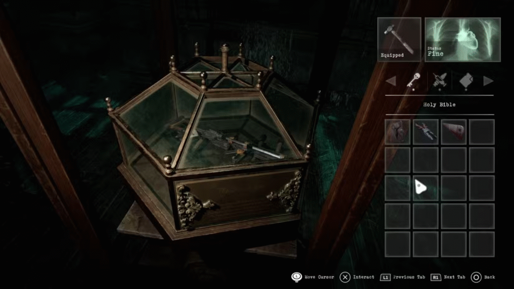 Comme pour le volet précédent, il sert de tutoriel au joueur pour penser à examiner les objets ramassés durant l’aventure.