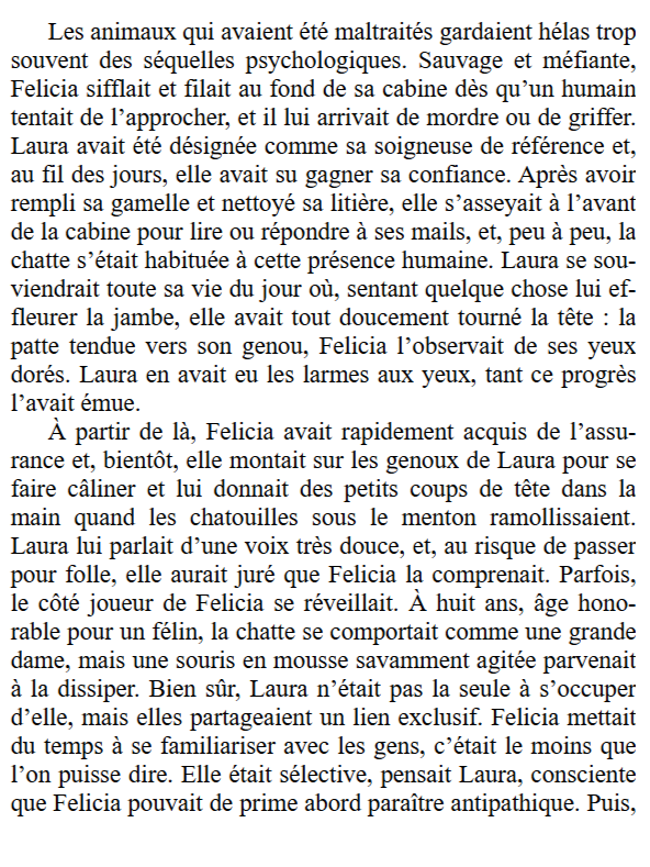 Ayant moi-même accueilli mes premiers chats à une période compliquée de ma vie, j’ai compris sans difficulté ce besoin de lien, cette forme de thérapie silencieuse qu’un animal peut offrir. C’est d’ailleurs ce qui m’a attirée vers ce titre : le refuge, les chats, cette promesse d’une histoire réconfortante.