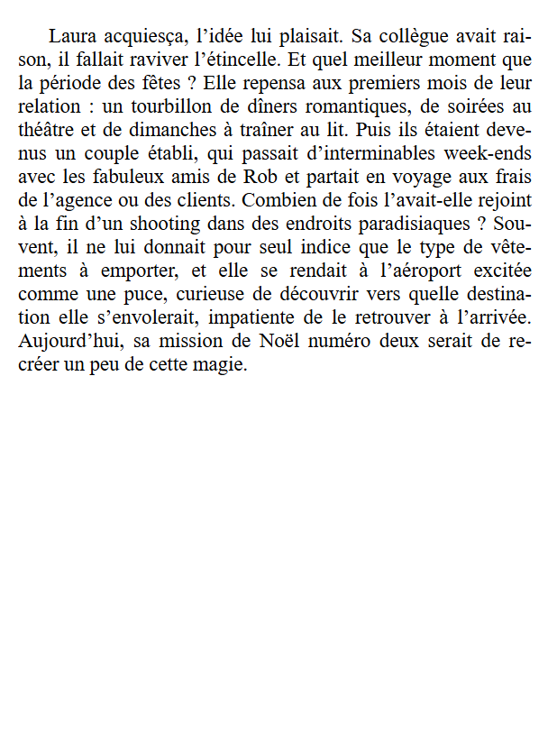 Parmi les personnages, certains incarnent parfaitement les codes des récits de noël, tout en apportant chacun une nuance différente. Laura Summers, au centre du roman, porte l’histoire avec sa sensibilité et ses failles. Une jeune femme dévouée, tiraillée entre ses certitudes et ce qu’elle n’ose pas encore affronter. À ses côtés, Rob, son petit ami, incarne le partenaire “parfait” sur le papier. Attentif, posé mais dont la vision du bonheur n’est plus tout à fait alignée avec celle de Laura.