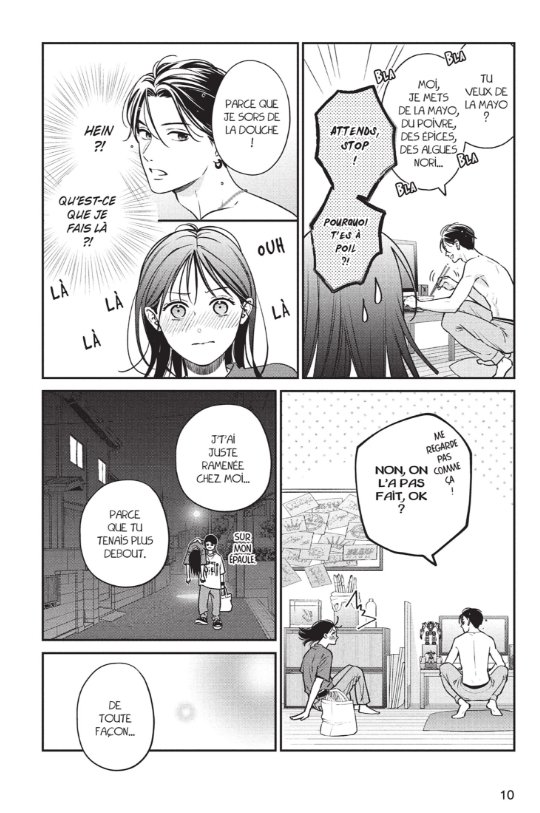 En particulier pour Hibari qui est avant tout une jeune femme sérieuse, mais peu sûre d’elle. Alors qu’elle est alcoolisée, elle décide de sortir de sa zone de confort et embrasse la joue de Gaku. Le lendemain, se souvenant de ce qu’elle a fait et surtout honteuse, elle décide de faire comme si rien ne s’était passé. Ce qui n’est pas au goût de notre esprit libre du nom de Gaku qui tente de lui faire comprendre subtilement qu’il veut être avec elle…