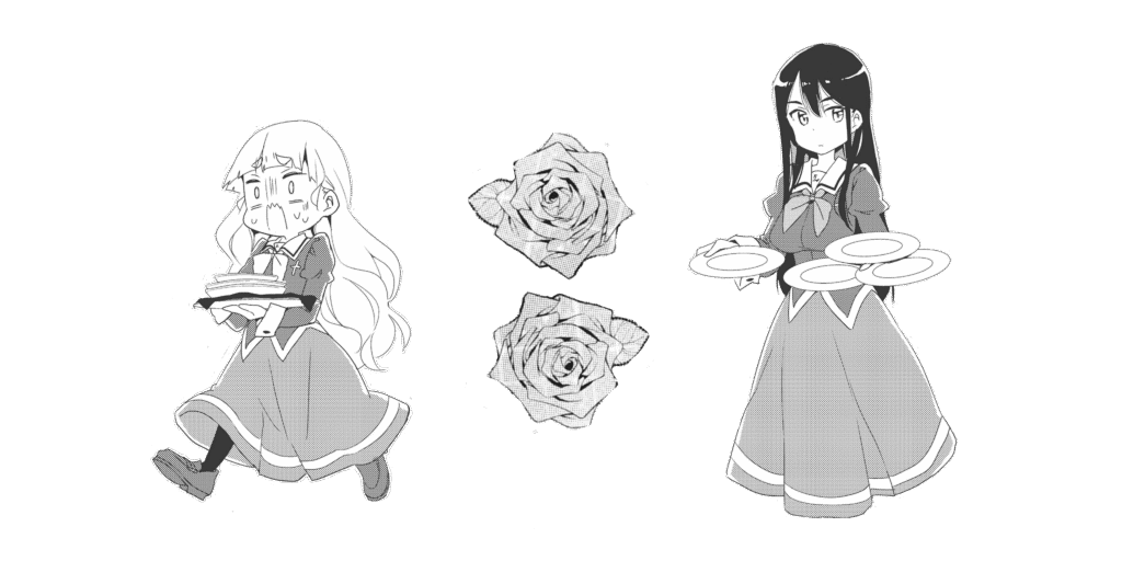 Le Café Liebe, théâtre miniature aux codes rigides, inspirés des écoles pour jeunes filles à l’allemande, devient le lieu où chaque personnage joue un rôle et se perd un peu dedans. Entre hiérarchie, faux liens et vraies blessures, le yuri flirte avec la comédie. Mais aussi avec une dimension plus subtile : celle de l’identité façonnée par le regard d’autrui.