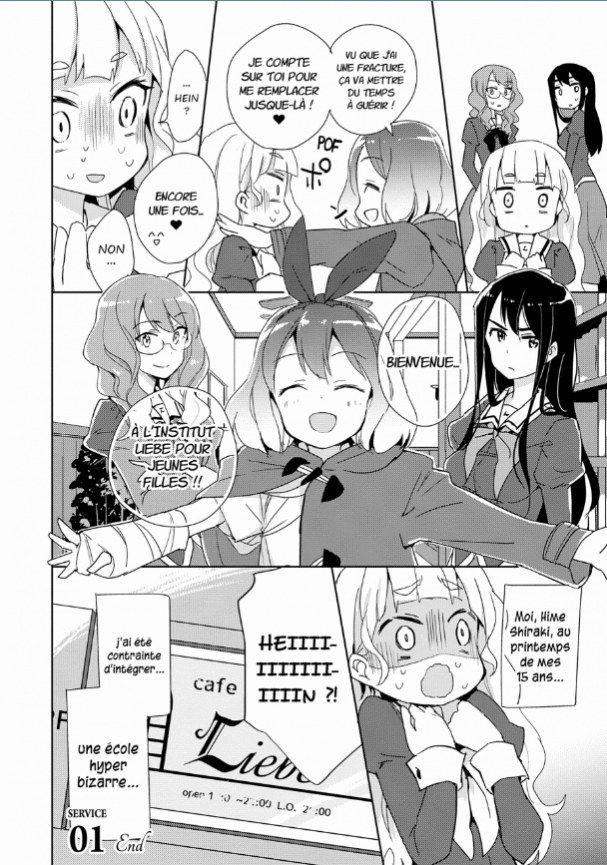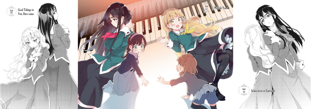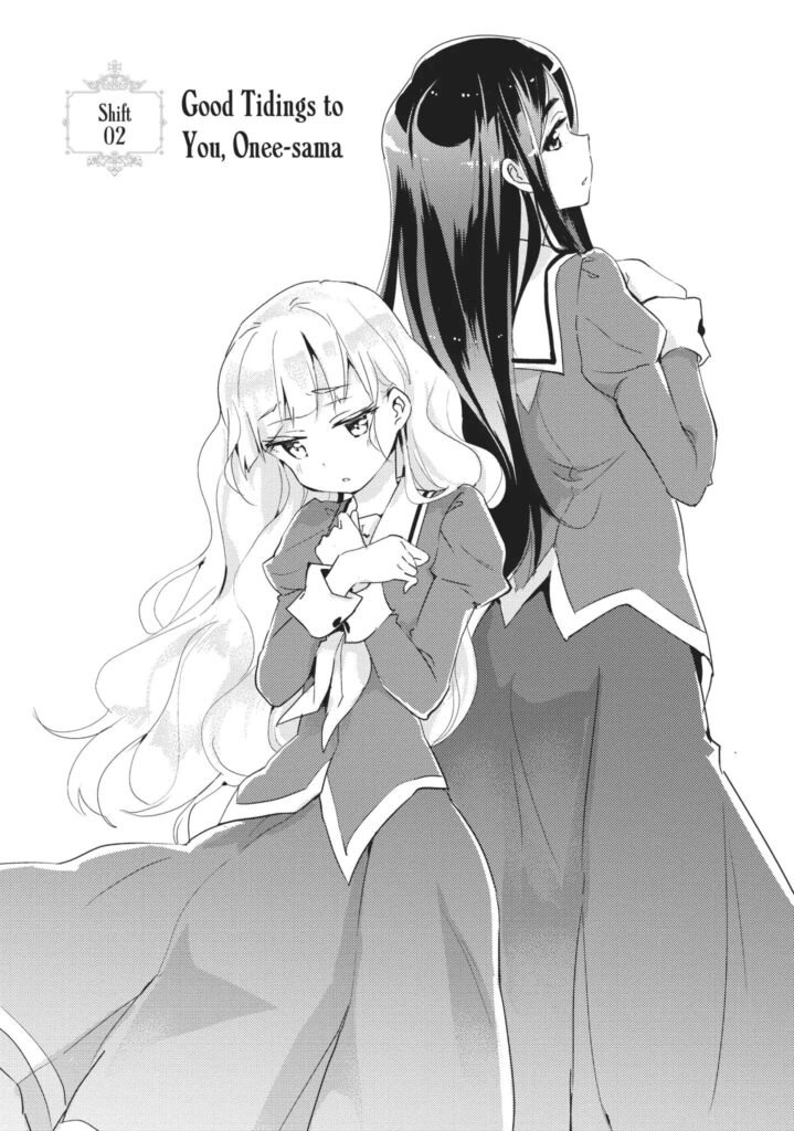 Cet endroit est en réalité un salon où les serveuses jouent le rôle d’élèves pures et gracieuses appartenant à une école catholique et entretenant des relations de Schwestern, autrement dit de sœurs. Or, voilà que Hime appelle par mégarde sa nouvelle collègue Mitsuki « grande sœur. » »